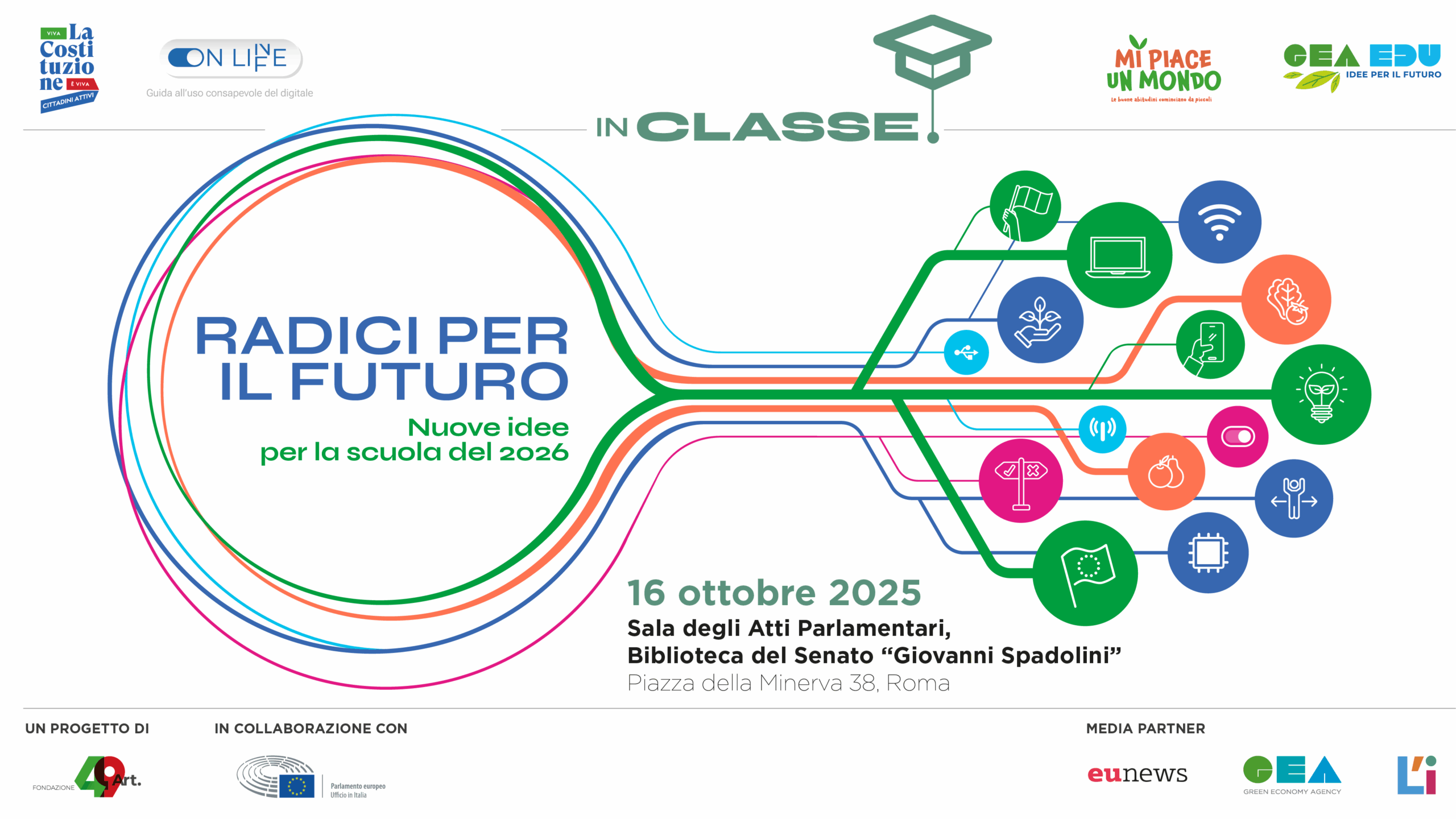 ‘Radici per il futuro. Nuove idee per la scuola del 2026’ è la giornata organizzata da Fondazione Articolo 49, in collaborazione con il Parlamento Europeo e con il supporto delle istituzioni nazionali e locali, dedicata alla presentazione dei progetti che si svolgeranno nell’anno scolastico 2025/26 ed erogati dalla piattaforma InClasse. L’appuntamento è per il 16 ottobre alle ore 10:45 presso la Sala degli Atti Parlamentari della Biblioteca del Senato Giovanni Spadolini, in Piazza della Minerva 38 a Roma (disponibile anche in diretta streaming sulla Webtv e canali social del Senato al link: webtv.senato.it/webtv). I progetti educativi InClasse, offerti gratuitamente alle scuole italiane, in collaborazione con il Parlamento europeo – Ufficio in Italia e con il patrocinio della Commissione europea e del Forum per lo sviluppo sostenibile, propongono approfondimenti su temi molto dibattuti nella scuola di oggi, come l’utilizzo consapevole del web, dei social network e dell’Intelligenza artificiale, educazione alimentare, sviluppo di competenze per la transizione ecologica, conoscenza delle istituzioni europee e nazionali e sulle competenze per l’orientamento scolastico e professionale. La scorsa edizione, quella relativa all’anno scolastico 2024/25, ha coinvolto circa 30.000 studenti in tutta Italia.