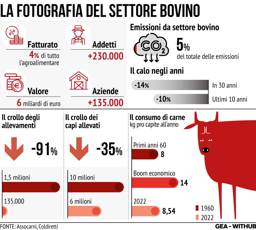 Una filiera, che rappresenta più del 4% del fatturato del comparto agroalimentare italiano, per un valore di oltre 6 miliardi di euro, e che vede coinvolti più di 230mila addetti in oltre 135mila aziende attive in tutte le regioni del nostro paese. È questa la fotografia del settore del bovino italiano, emersa durante il simposio internazionale ‘Cow is Veg – Il ruolo dei ruminanti in una dieta sostenibile’, organizzato da Assocarni in collaborazione con Coldiretti.