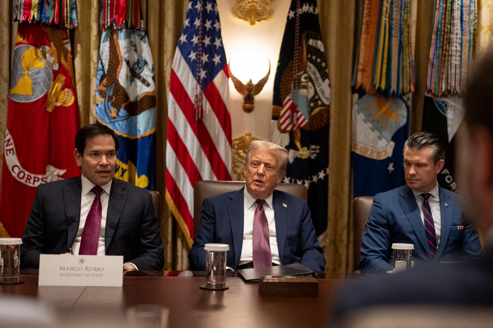 MARCO RUBIO SEGRETARIO DI STATO USA, DONALD TRUMP PRESIDENTE USA, PETE HEGSETH SEGRETARIO DIFESA USA