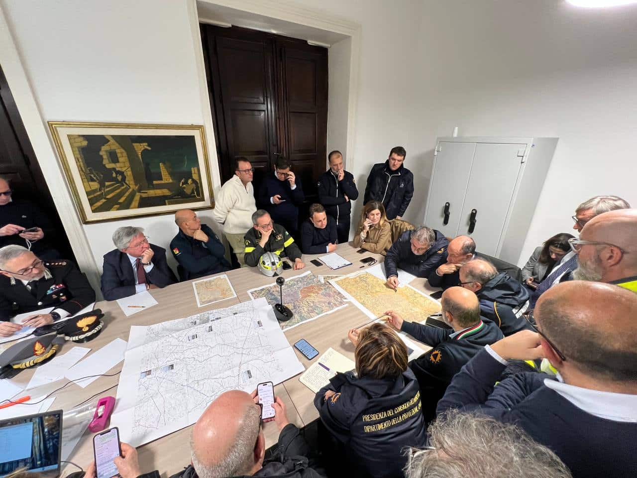 RENATO SCHIFANI PRESIDENTE REGIONE SICILIA FABIO CICILIANO CAPO DEL DIPARTIMENTO NAZIONALE DELLA PROTEZIONE CIVILE SALVO COCINA DIRIGENTE GENERALE DELLA PROTEZIONE CIVILE REGIONALE DONATELLA LICIA MESSINA PREFETTO CALTANISSETTA DANIELA FARAONI ASSESSORE ALLA SALUTE MASSIMILIANO CONTI SINDACO NISCEMI SERGIO TUMMINELLO ATTUATORE DELLA STRUTTURA COMMISSARIALE CONTRO IL DISSESTO IDROGEOLOGICO LEONARDO SANTORO SEGRETARIO GENERALE DELL'AUTORITÀ DI BACINO