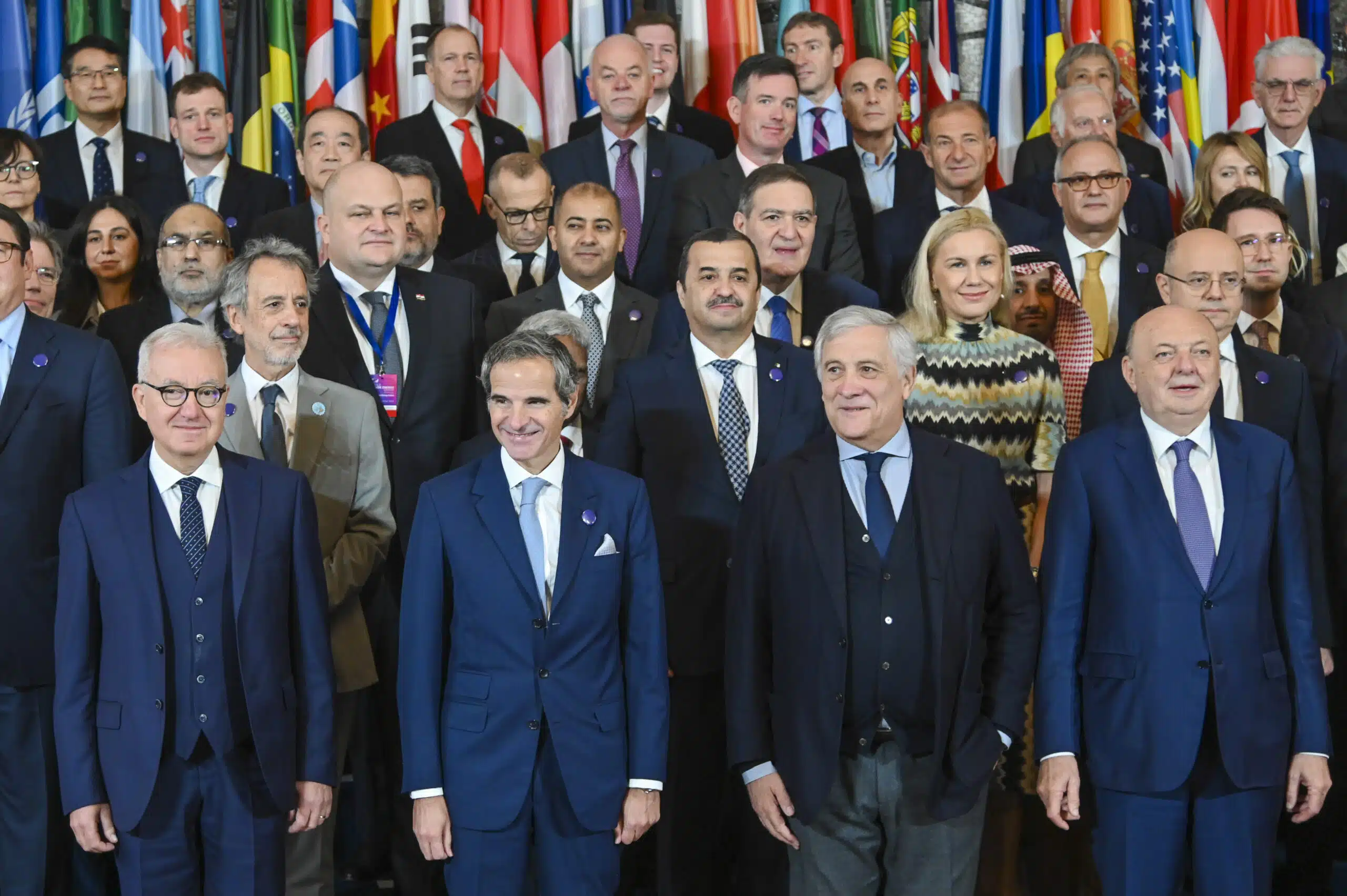 Pichetto incontra la stampa con il direttore dell’Aiea, Rafael Grossi, in una pausa dei lavori del gruppo, che riunisce i più importanti rappresentanti dei settori pubblico e privato, dell’industria, del mondo accademico, degli enti di ricerca e della società civile.